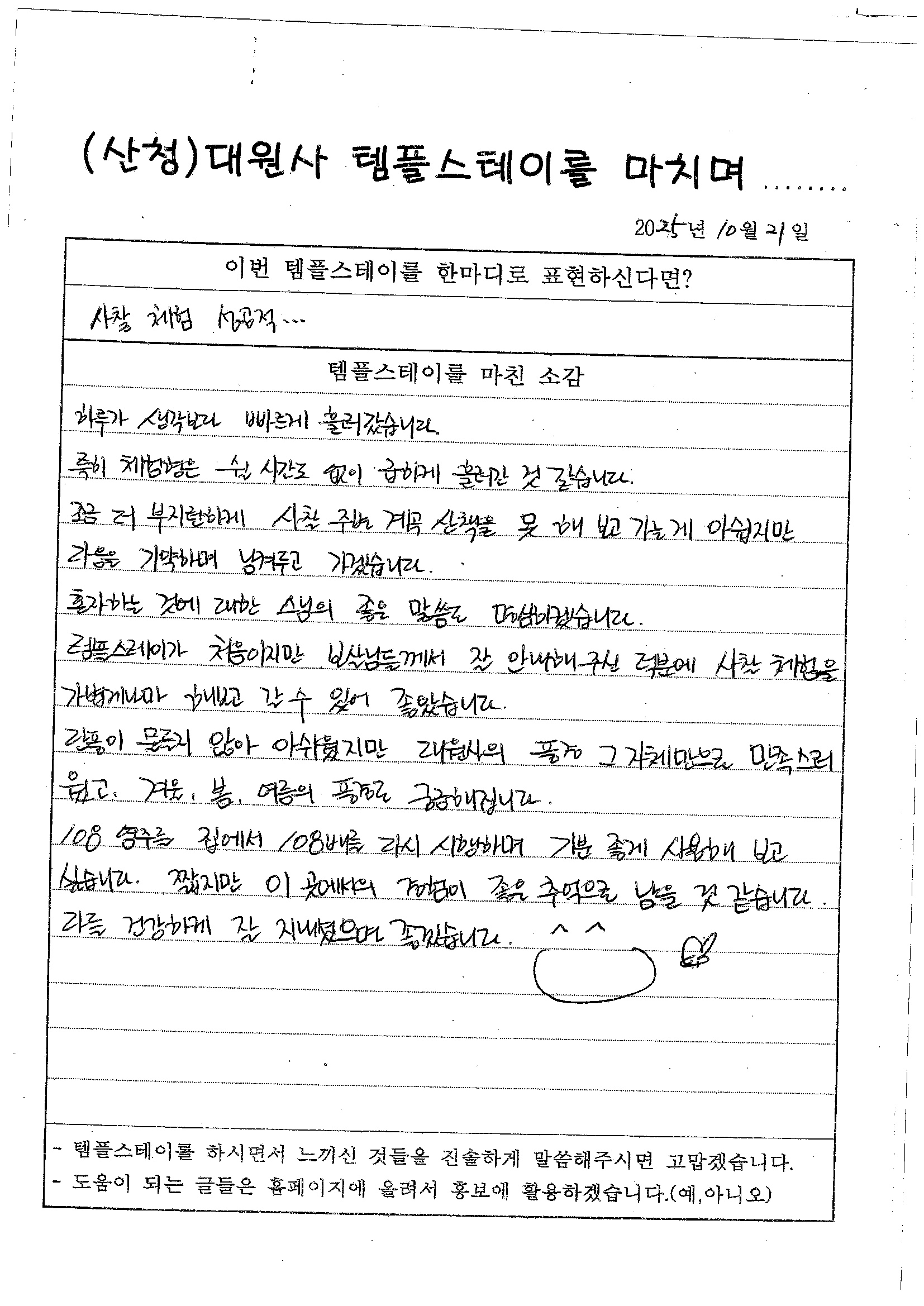 Home  >  템플스테이  >  체험후기